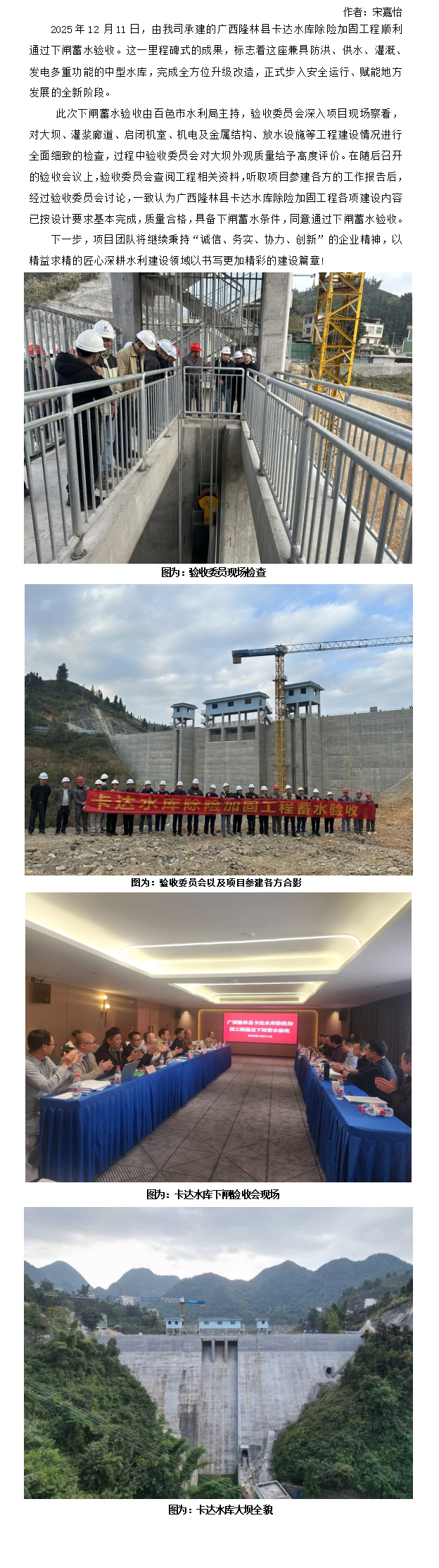 广西隆林县卡达水库工程顺利通过下闸蓄水验收